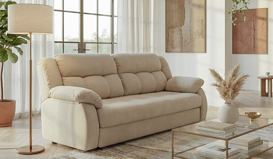 Ищете практичную и стильную мебель для дома? Представляем прямой диван «Монреаль 2М» в нежном бежевом оттенке — идеальное сочетание уюта и современного дизайна.