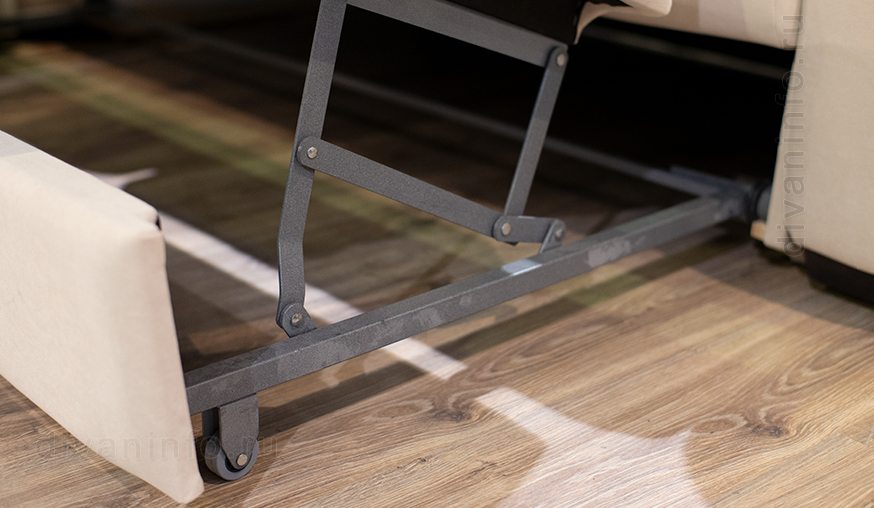 Крепкий каркас из бука и хвойных пород дерева гарантирует долговечность, а механизм трансформации "дельфин" легко превращает гостиную в уютное место для сна. Спите спокойно на прочных змеевидных пружинах и упругом пенополиуретане высокого качества, которые обеспечат комфорт и сохранят форму долгие годы.